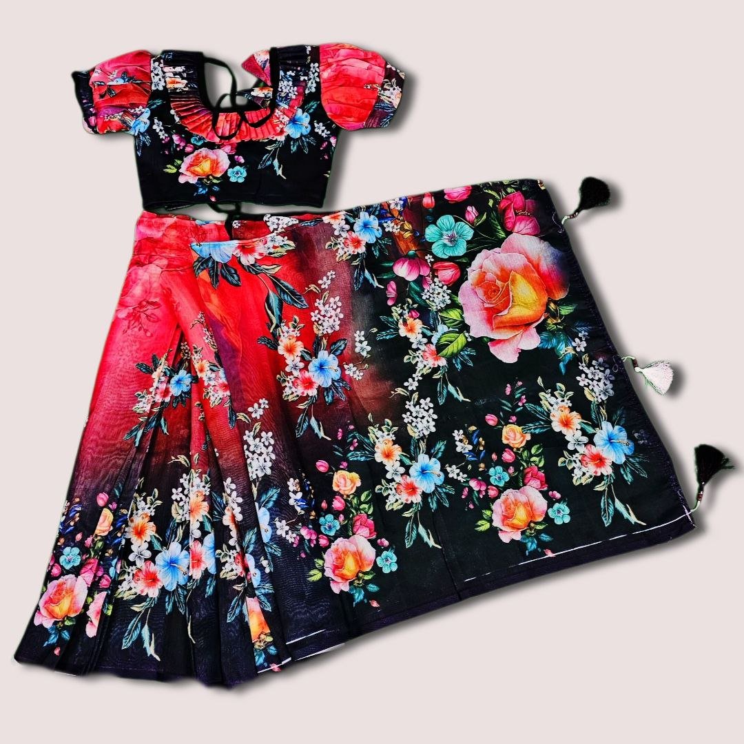 বাচ্চাদের লাল কালো সুতির রেডি শাড়ি