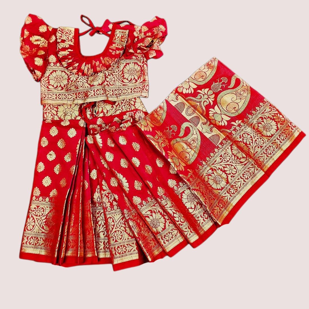 বাচ্চাদের লাল লতা সফট কাতান রেডি শাড়ি