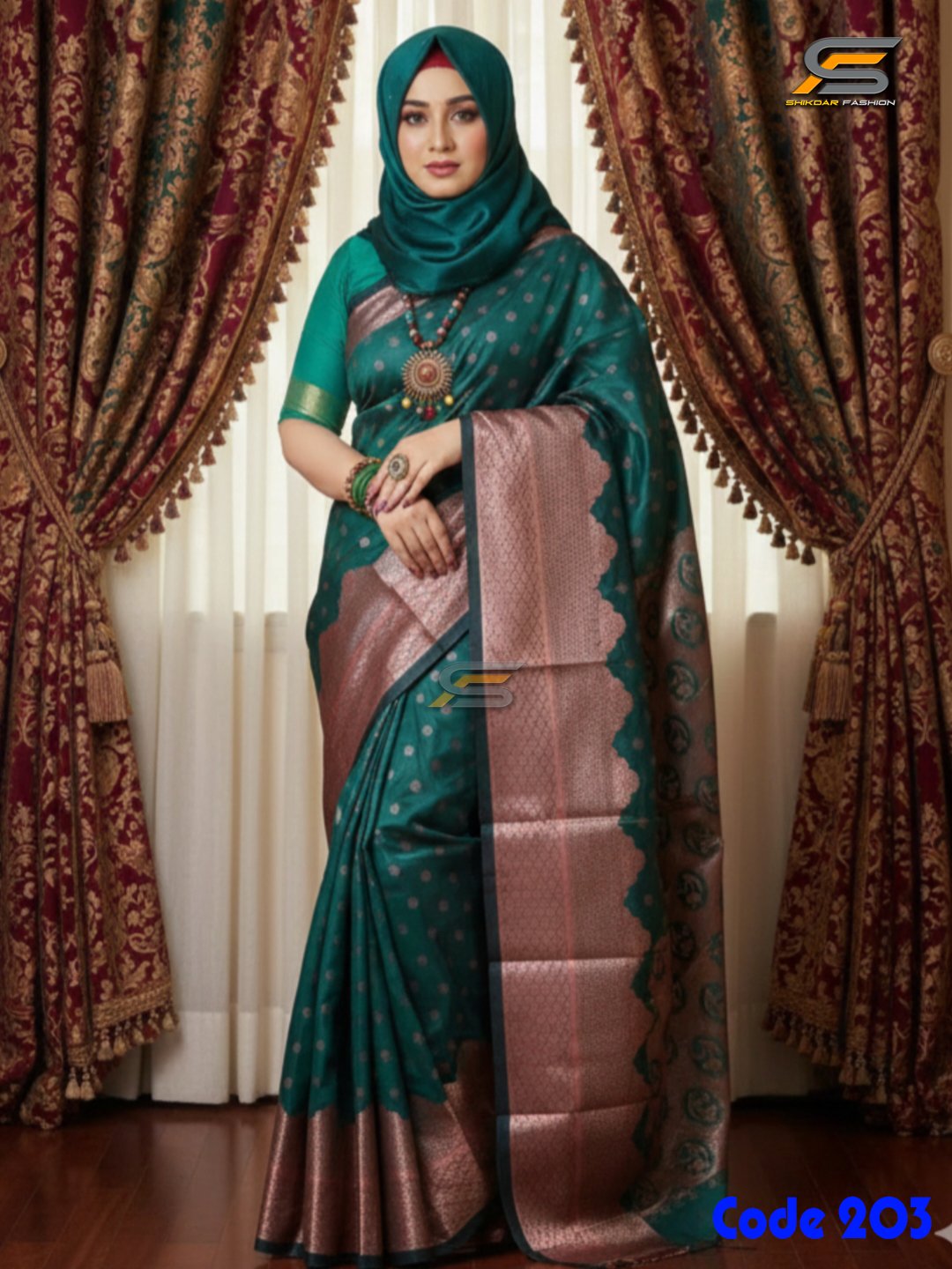 কমলিকা কাতান শাড়ি রানিং ব্লাউজ পিস সহ।