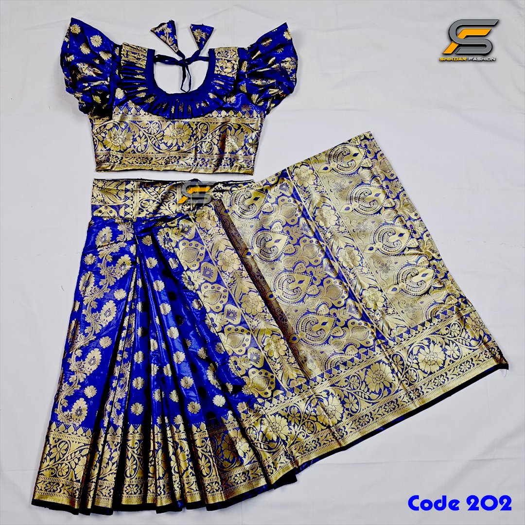 বাচ্চাদের নীল লতা সফট কাতান রেডি শাড়ি