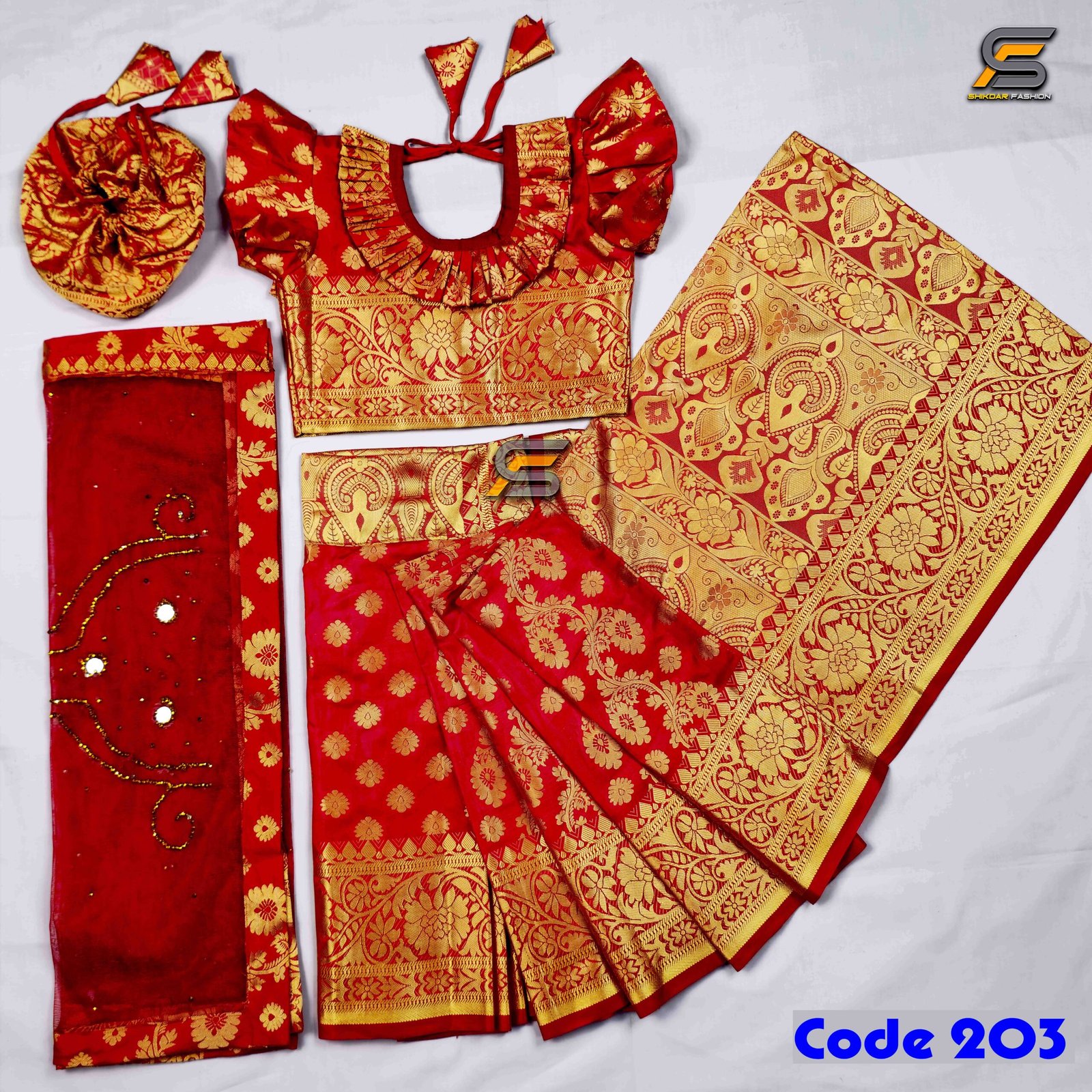 ওড়নাসহ বাচ্চাদের লাল লতা সফট কাতান রেডি শাড়ি