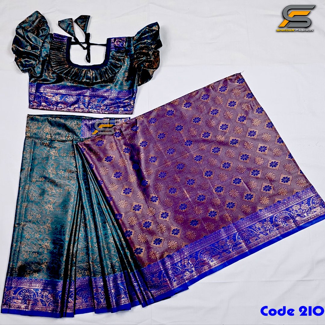 বাচ্চাদের কুয়ালিটির কাঞ্জিভরম কাতান রেডি শাড়ি।